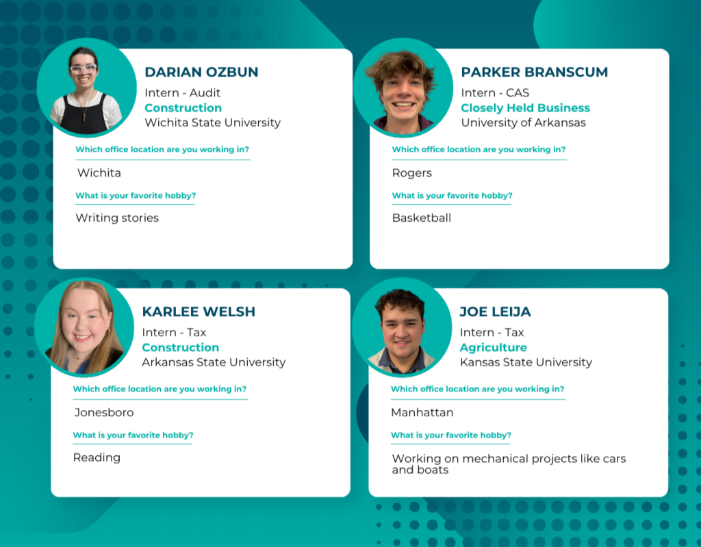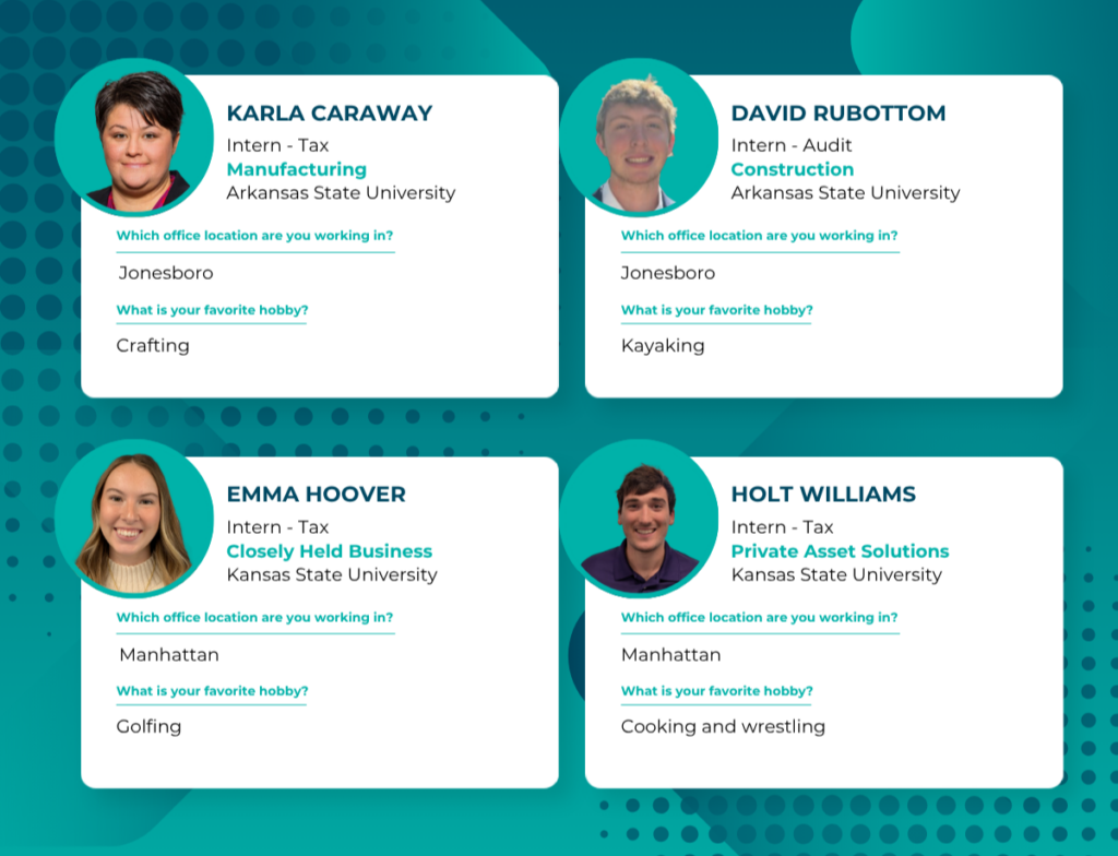 During busy season, Adams Brown interns worked on real returns, supported real engagements and got a closer look at how teams solve problems under real deadlines. They were able to connect what they have learned in school to the pace and expectations of public accounting, while also building confidence along the way.